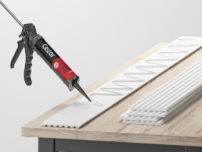 Za montažu šire zidne obloge THALIA04 (dimenzije 2800 × 155 × 4mm), preporučuje se nanošenje dvaju paralelnih tragova ljepila ili jedan izražen zig-zag uzorak duž cijele stražnje strane obloge. Zbog veće širine profila, potrošnja ljepila je nešto veća – za jedan komad potrebno je otprilike 2/3 tube od 300 ml. To znači da s jednom tubom možete montirati 1 do 2 komada THALIA04 obloge, ovisno o načinu nanošenja i podlozi.