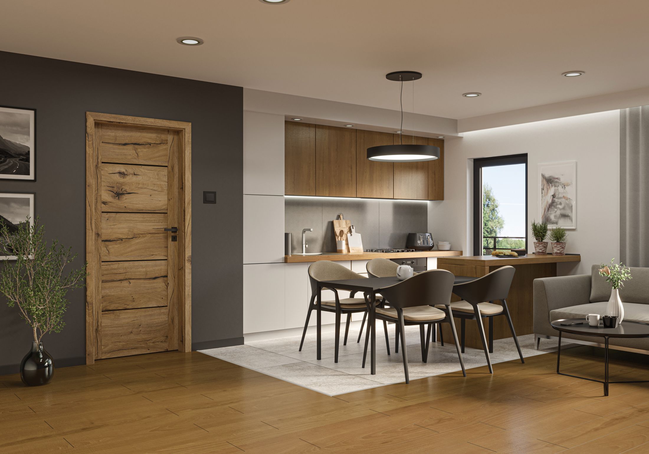 U 2026. godini sve se više pažnje posvećuje usklađivanju sobnih vrata s podnim oblogama. Umjesto identičnih dekora, trend je u nijansama koje se nadopunjuju. Vrata i pod zajedno stvaraju vizualnu ravnotežu i osjećaj kontinuiteta u prostoru, što je posebno važno u otvorenim konceptima stanovanja.