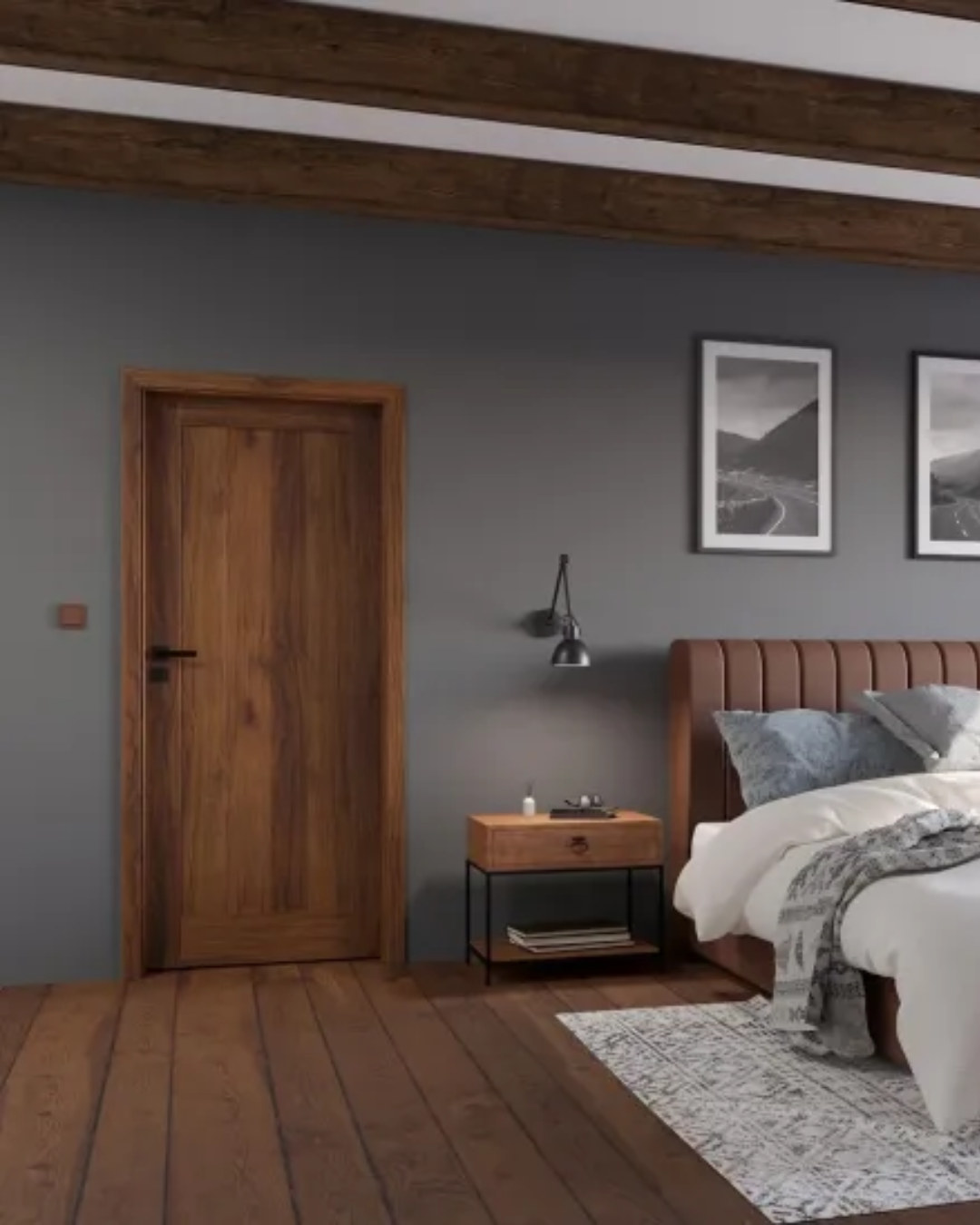 Za ljubitelje izraženijeg dizajna, u trendu su i tamna sobna vrata u antracit, tamnosmeđim i crnim nijansama. Ovakav izbor daje prostoru karakter i dozu luksuza, posebno u kombinaciji s modernim interijerima i kvalitetnim podnim oblogama. Tamna vrata često se biraju kao naglasak u prostoru, a ne kao neutralna pozadina.